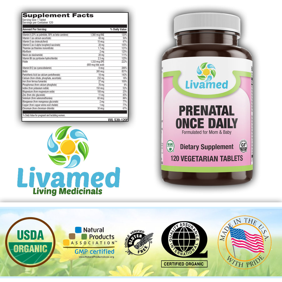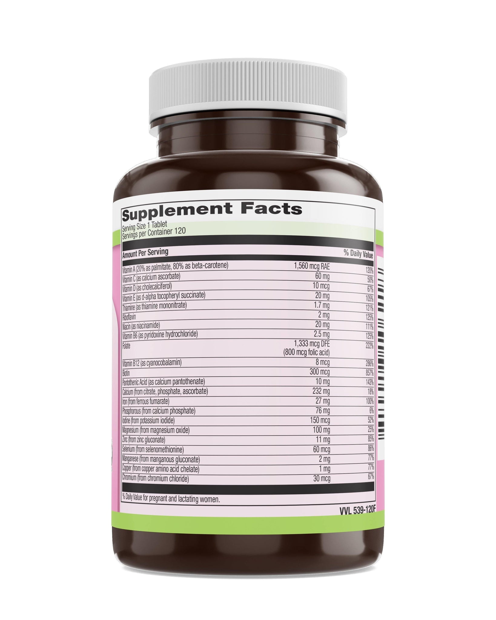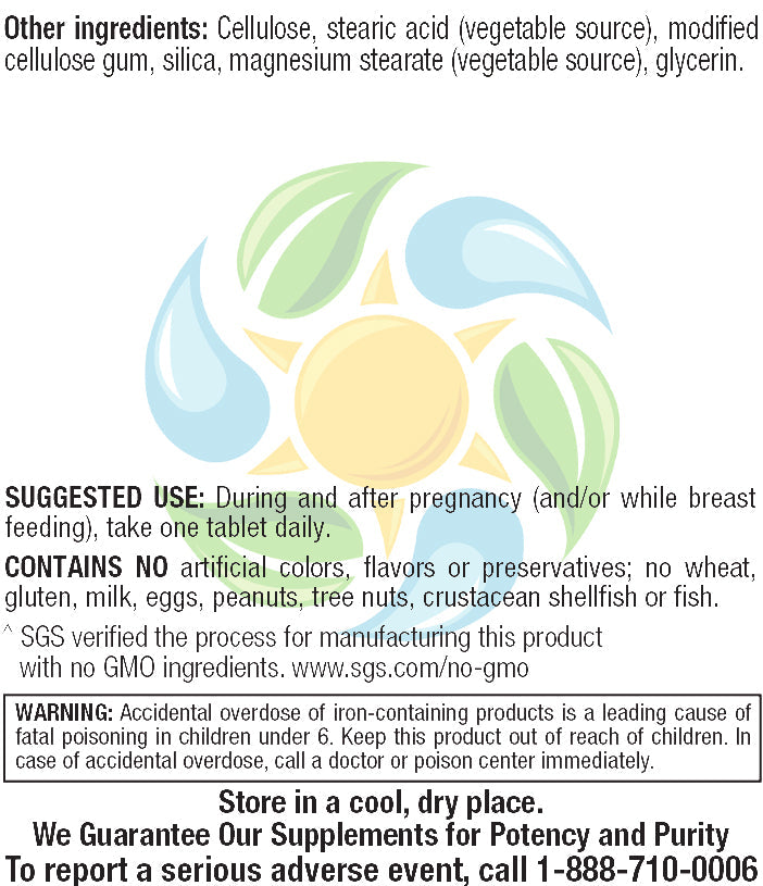 Health officials suggest women of childbearing age and those pregnant or lactating consume a multivitamin/mineral each day. Prenatal multi's are like the insurance policy to complement the diet. Of particular importance to women during this time are the nutrients folic acid and iron. Our product contains optimal amounts of each of these, in addition to a comprehensive prenatal formula in just one tablet per day--the perfect simple multi for those on the go, or for women who need just a little extra nutrition support!