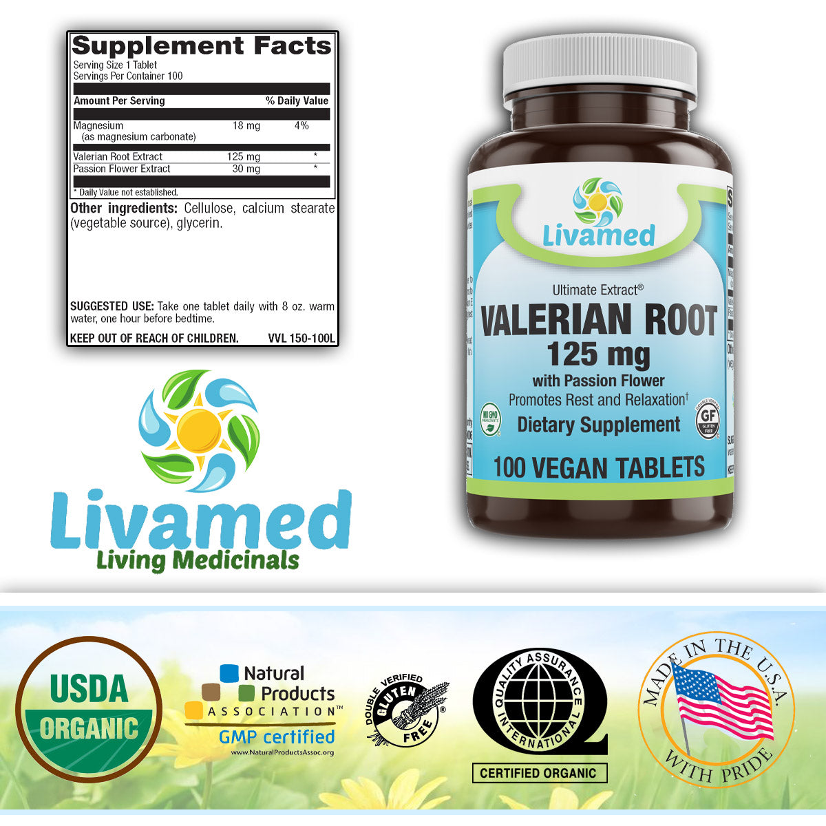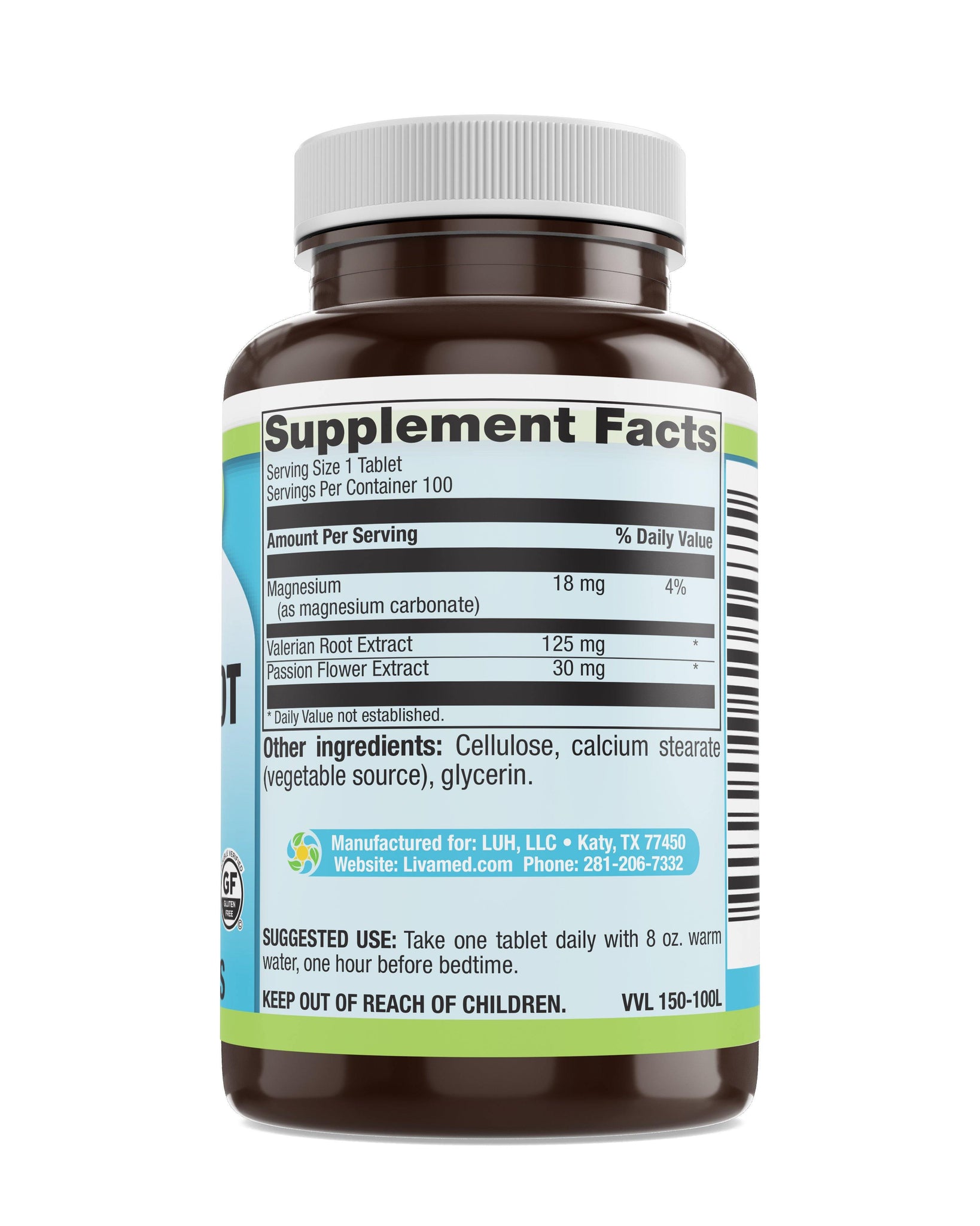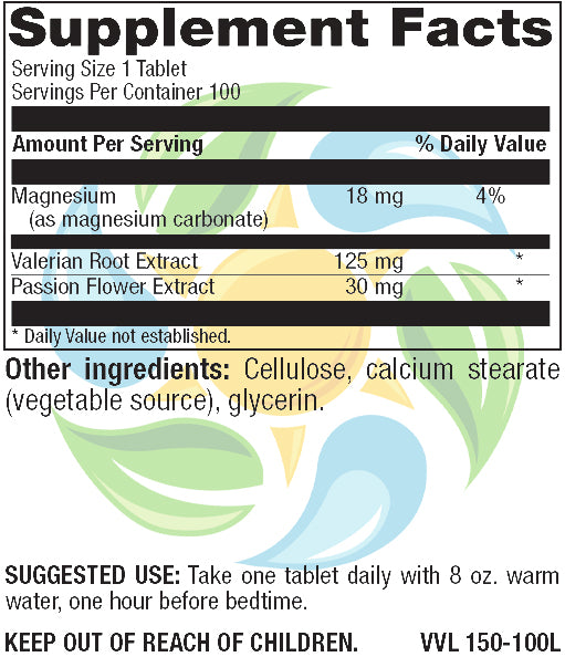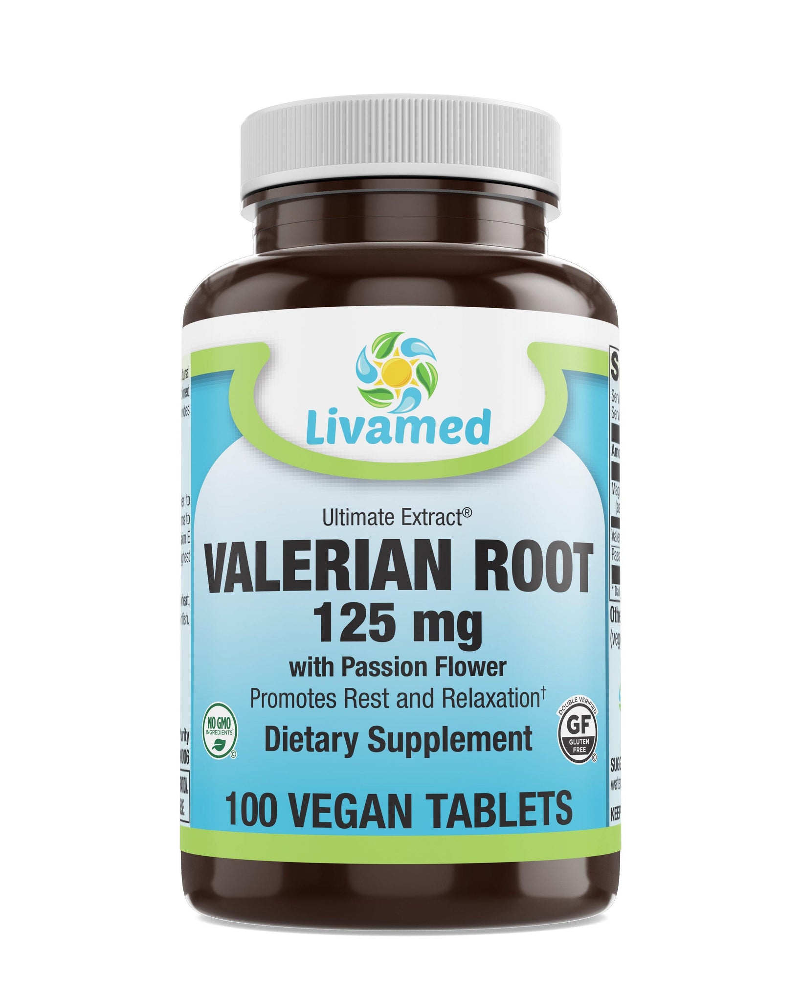 Valerian Root 125 mg with Passion Flower Veg Tabs 100 Count