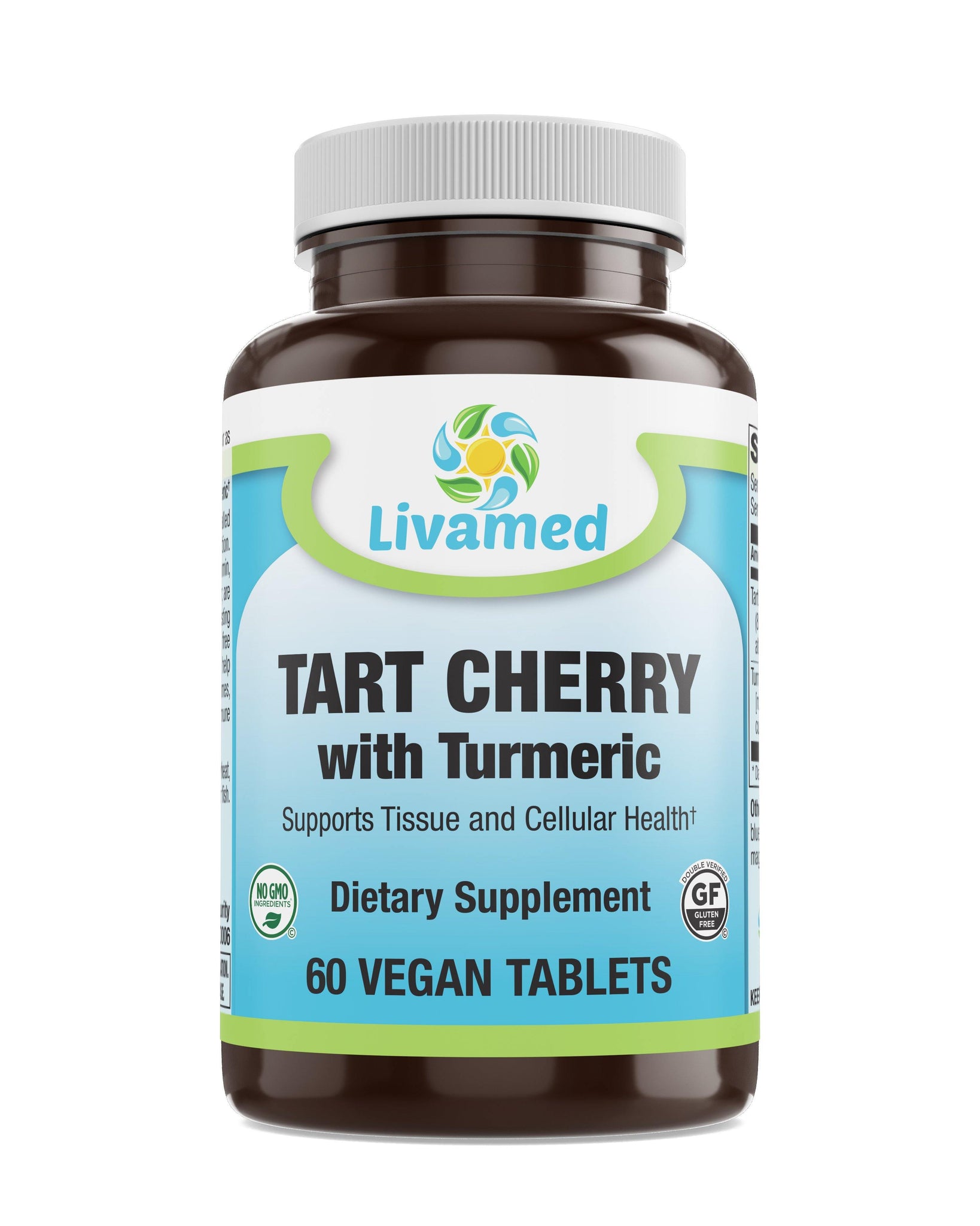 Tart Cherry with Turmeric from Livamed supports the healthy development of cells and tissue during normal aging, and provides antioxidant support for a healthy internal response to challenges. This formula contains a standardized extract from tart cherry, and also contains turmeric extract standardized to 95% curcuminoids.