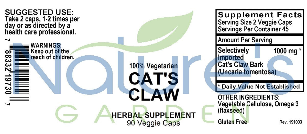Cat's Claw Bark - 90 Veggie Caps with Peruvian Cats Claw Uncaria Tomentosa Herb