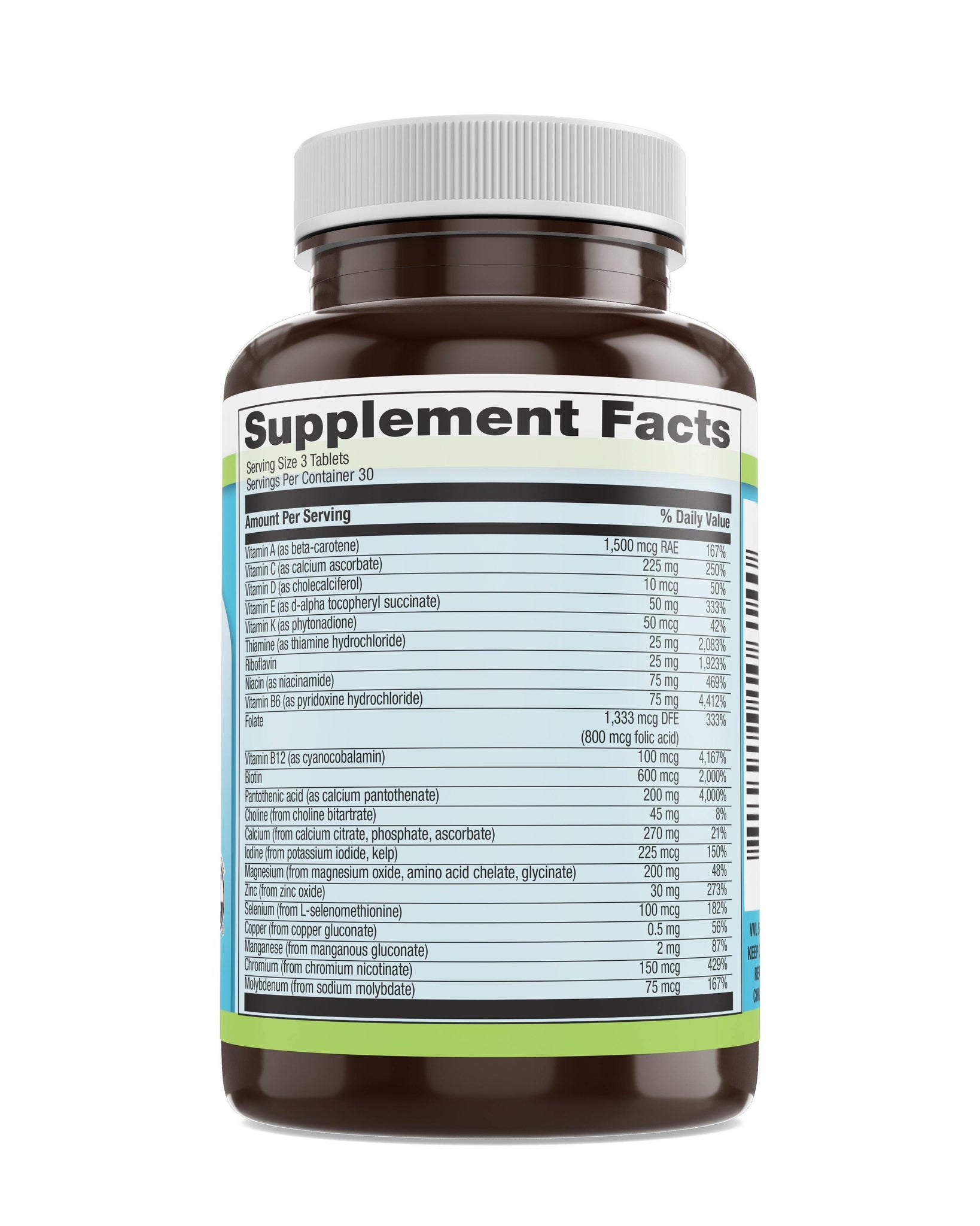 Get sufficient amounts of both vitamins and minerals (100% of 18 vitamins and minerals) that a diet alone may be lacking in. Improve function of the nervous system, heart, and immune system while protecting the body from men's top health treats. This complete multi is also created to support mental health and reduce stress.
