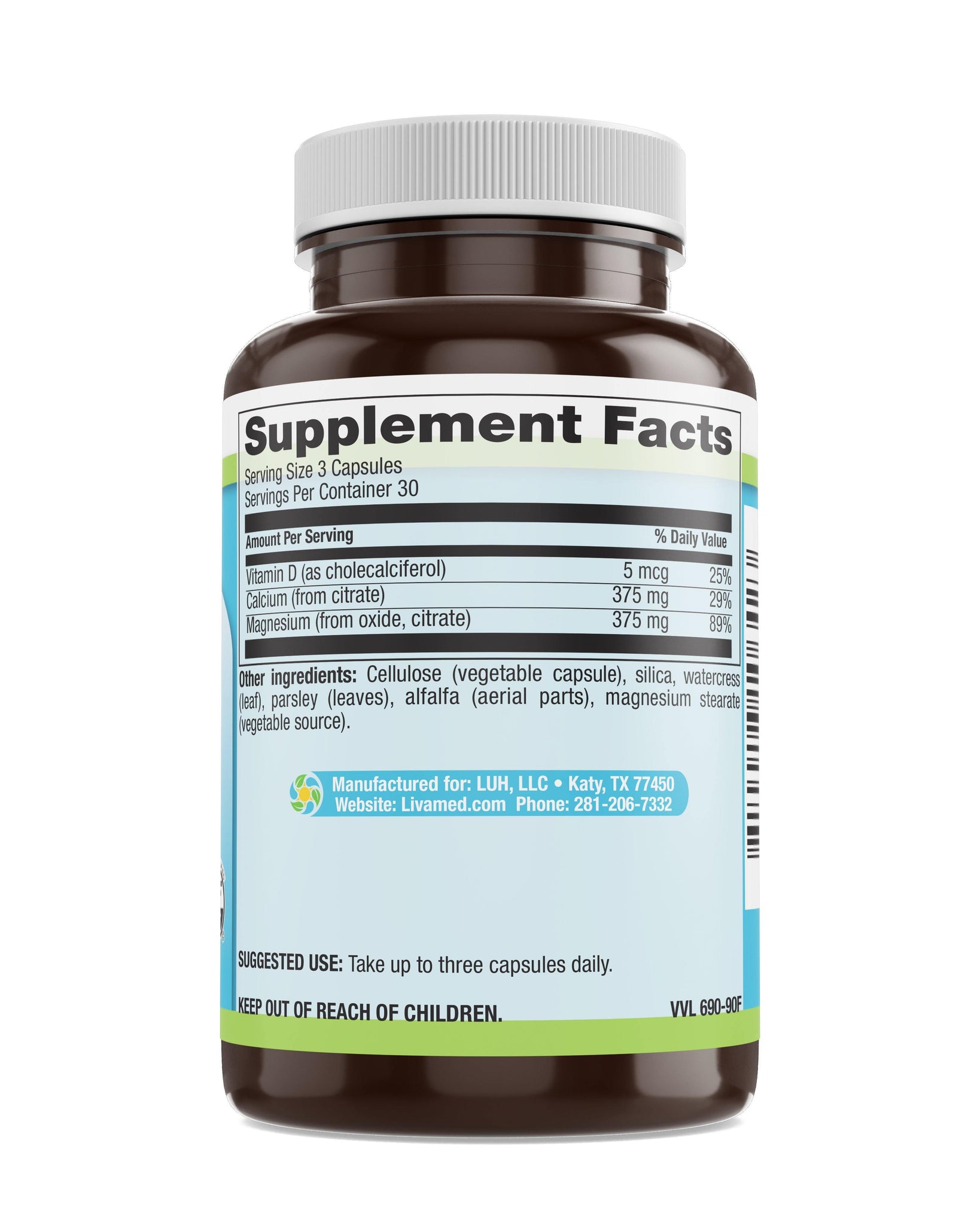 Livamed - Cal-Mag 1:1 with Vitamin D3 Veg Caps  90 Count - Livamed Vitamins